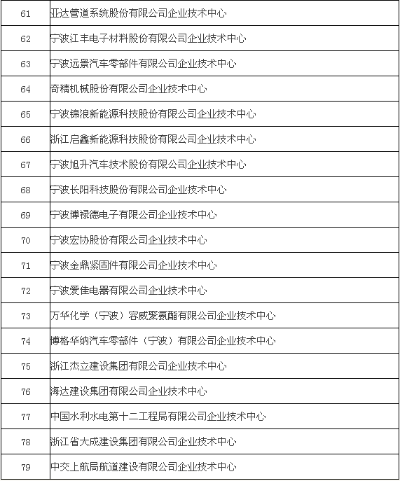 省級企業(yè)技術(shù)中心名單