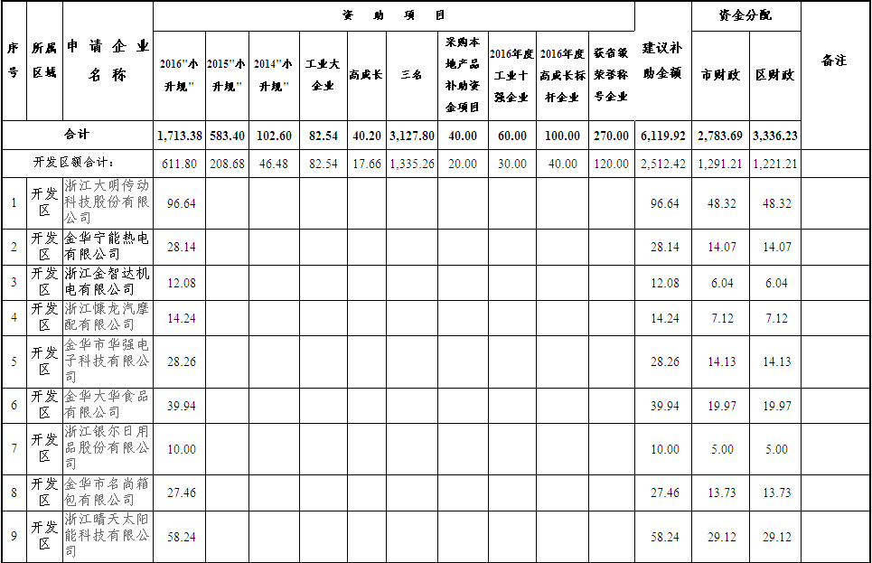 根據(jù)金華市人民政府《關(guān)于進(jìn)一步降低企業(yè)成本減輕企業(yè)負(fù)擔(dān)的若干意見(jiàn)》(金政發(fā)〔2016〕25號(hào))、《關(guān)于加快培育現(xiàn)代產(chǎn)業(yè)體系打造先進(jìn)制造業(yè)基地的通知》(金政發(fā)〔2016〕40號(hào))、《關(guān)于全面推進(jìn)“三名”工程的實(shí)施意見(jiàn)》(金政發(fā)〔2014〕42號(hào)),金華市人民政府辦公室《關(guān)于培育發(fā)展市區(qū)工業(yè)大企業(yè)大集團(tuán)的實(shí)施意見(jiàn)》(金政辦發(fā)〔2014〕7號(hào))、《關(guān)于印發(fā)金華市區(qū)高成長(zhǎng)企業(yè)培育辦法通知》(金政辦發(fā)〔2014〕6號(hào))、《關(guān)于支持小微工業(yè)企業(yè)規(guī)范升級(jí)的若干意見(jiàn)》(金政辦發(fā)〔2013〕40號(hào))、《關(guān)于促進(jìn)小型微型企業(yè)再創(chuàng)新優(yōu)勢(shì)的通知》(金政辦發(fā)〔2012〕79號(hào))等文件精神,市經(jīng)信部門(mén)及時(shí)下發(fā)通知,組織企業(yè)申報(bào),經(jīng)過(guò)企業(yè)申報(bào)、各區(qū)初審和金華君安會(huì)計(jì)事務(wù)所審計(jì),現(xiàn)將2016年度市區(qū)小升規(guī)企業(yè)、工業(yè)大企業(yè)大集團(tuán)、高成長(zhǎng)企業(yè)、“三名”培育試點(diǎn)企業(yè)、采購(gòu)本地產(chǎn)品項(xiàng)目、工業(yè)十強(qiáng)企業(yè)、高成長(zhǎng)標(biāo)桿企業(yè)、獲省級(jí)榮譽(yù)稱號(hào)企業(yè)等財(cái)政補(bǔ)助資金予以公示,公示期:2017年10月21日—10月27日,聯(lián)系人:鄭海員;聯(lián)系電話:82463730。
