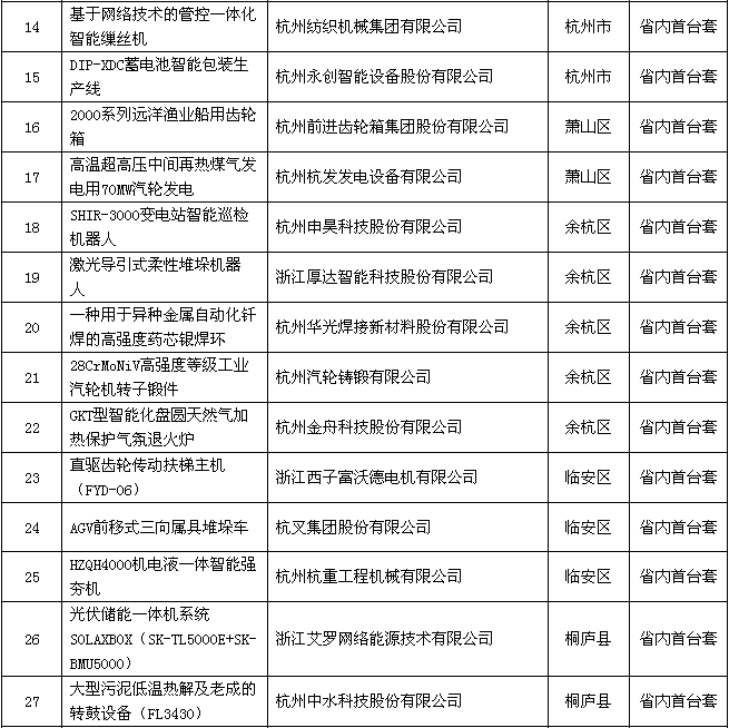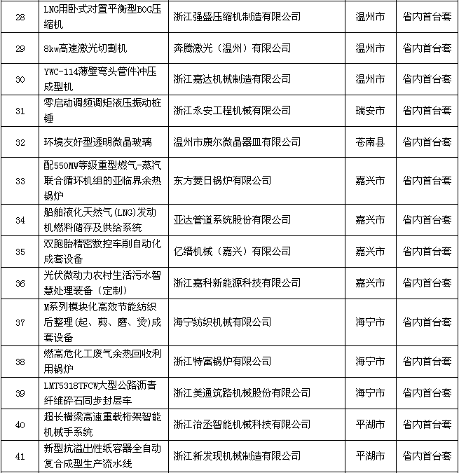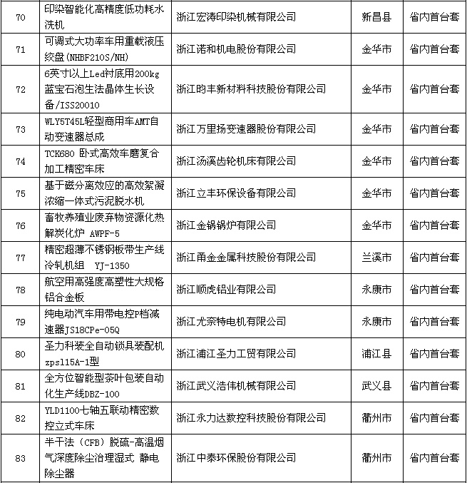 附件:2018年度浙江省裝備制造業(yè)重點領域首臺(套)產(chǎn)品認定結果公示名單
