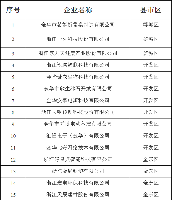 根據(jù)《金華市專利示范企業(yè)認定與管理辦法》(金政發(fā)〔2004〕132號,金政發(fā)〔2008〕70號修改)文件精神,在各縣(市、區(qū))科技管理部門推薦的基礎(chǔ)上,經(jīng)材料審查、專家評審,擬認定金華市希能折疊桌制造有限公司等60家企業(yè)為2017年金華市專利示范企業(yè),現(xiàn)予公示,接受社會監(jiān)督,公示期從2017年11月16日至22日止。如有異議,請來人來電反映。