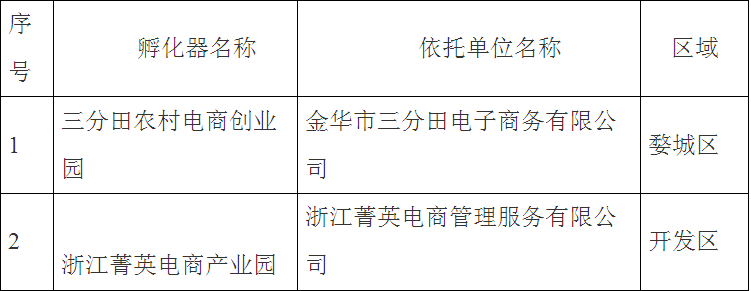 根據(jù)《金華市級科技孵化器認定與管理辦法》(金市科字〔2010〕66號),擬認定三分田農村電商創(chuàng)業(yè)園、浙江菁英電商產業(yè)園2家單位為金華市級科技孵化器,現(xiàn)予以公示,接受社會監(jiān)督。如有異議,請來人來電反映,以個人名義反映的,請署真實姓名;以單位反映的,須加蓋單位公章;匿名反映的材料不予受理。公示日期為12月19日至12月26日。
