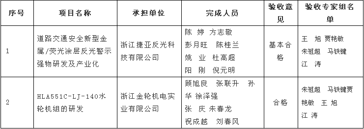 根據(jù)《金華市級(jí)科技計(jì)劃項(xiàng)目驗(yàn)收管理辦法》(金市科字〔2015〕83號(hào))規(guī)定,現(xiàn)將浙江捷亞反光科技有限公司、浙江金輪機(jī)電實(shí)業(yè)有限公司承擔(dān)的《道路交通安全新型金屬/熒光涂層反光警示強(qiáng)物研發(fā)及產(chǎn)業(yè)化》、《HLA551C-LJ-140水輪機(jī)組的研發(fā)》2個(gè)市級(jí)科技計(jì)劃項(xiàng)目驗(yàn)收結(jié)果予以公示,接受社會(huì)監(jiān)督,公示期從2018年1月16日至1月24日止。