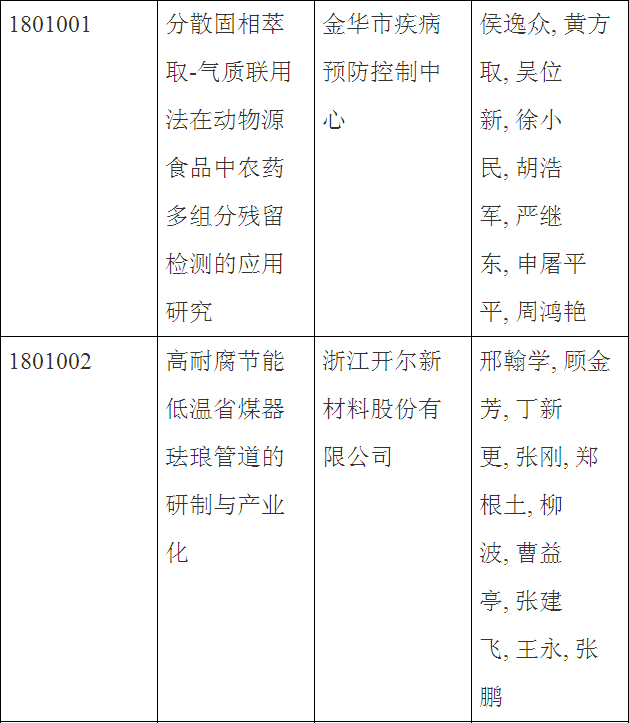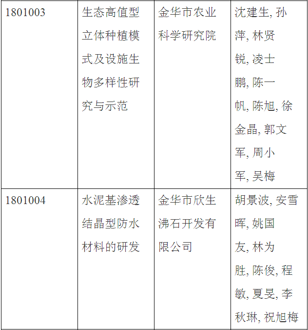 第三十三批金華市科技成果登記名單