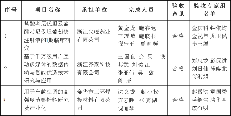 金華市級(jí)科技計(jì)劃項(xiàng)目驗(yàn)收結(jié)果公示清單