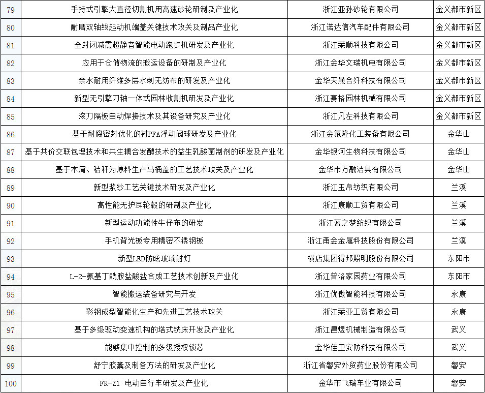 2018年全市共申報項目216項,經(jīng)形式審查,淘汰16項,共200項項目進入評審。目前評審結(jié)果,擬立項100項,其中婺城區(qū)15項,金東區(qū)20項,開發(fā)區(qū)39項,金義都市新區(qū)11項,金華山旅游經(jīng)濟區(qū)3項,蘭溪4項,東陽、永康、武義、磐安各2項。