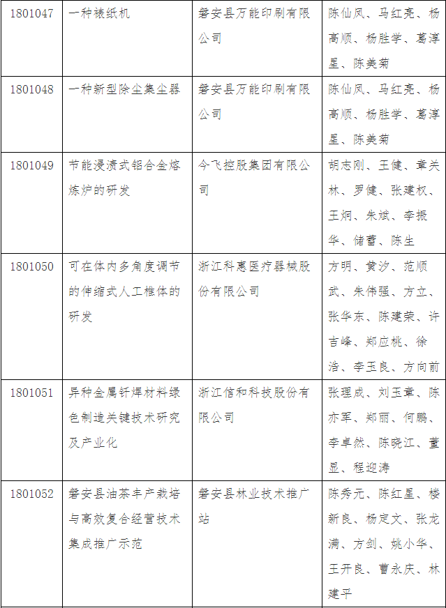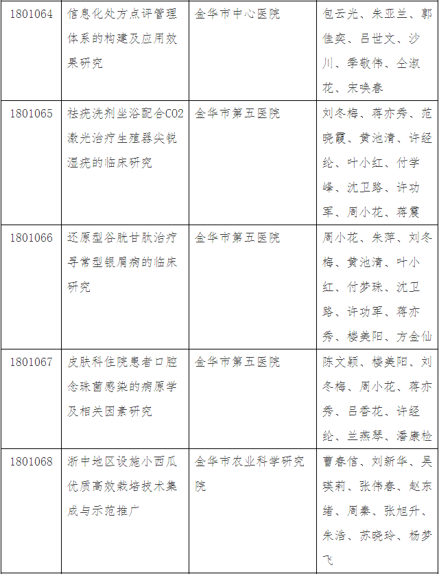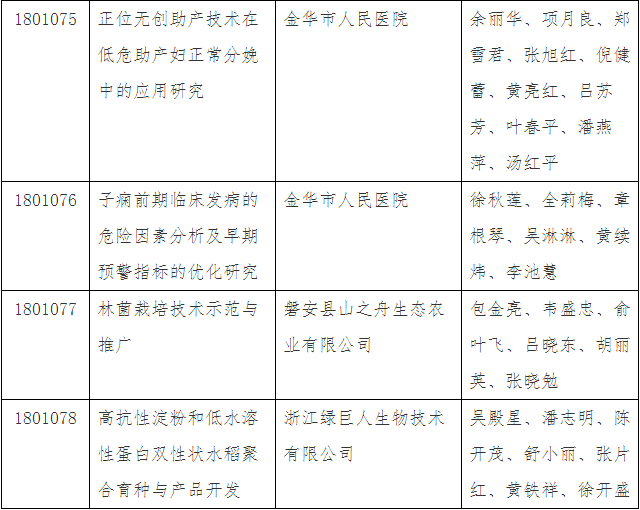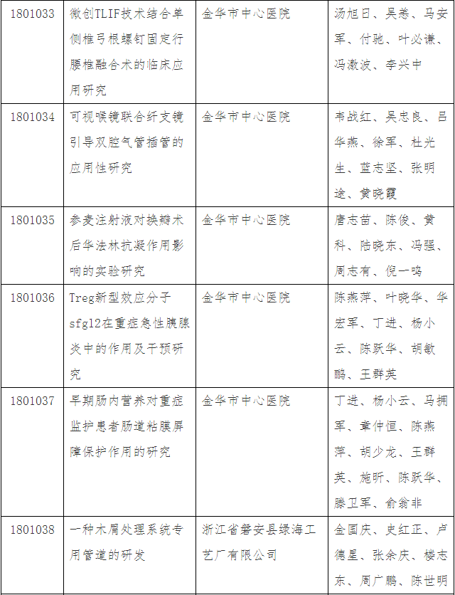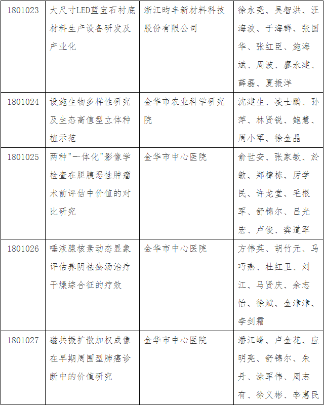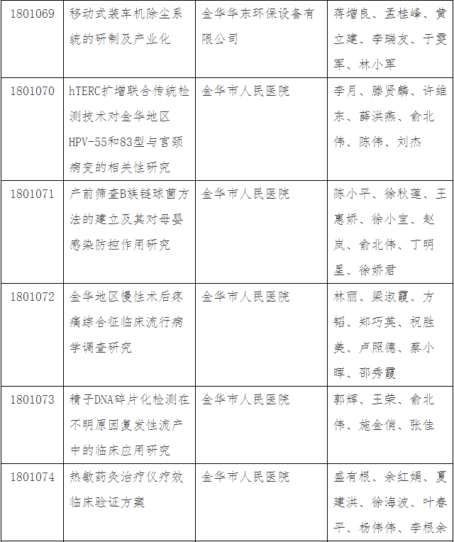 第三十四批金華市科技成果登記名單