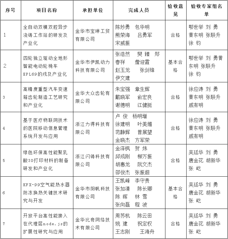 金華市級(jí)科技計(jì)劃項(xiàng)目驗(yàn)收結(jié)果公示清單
