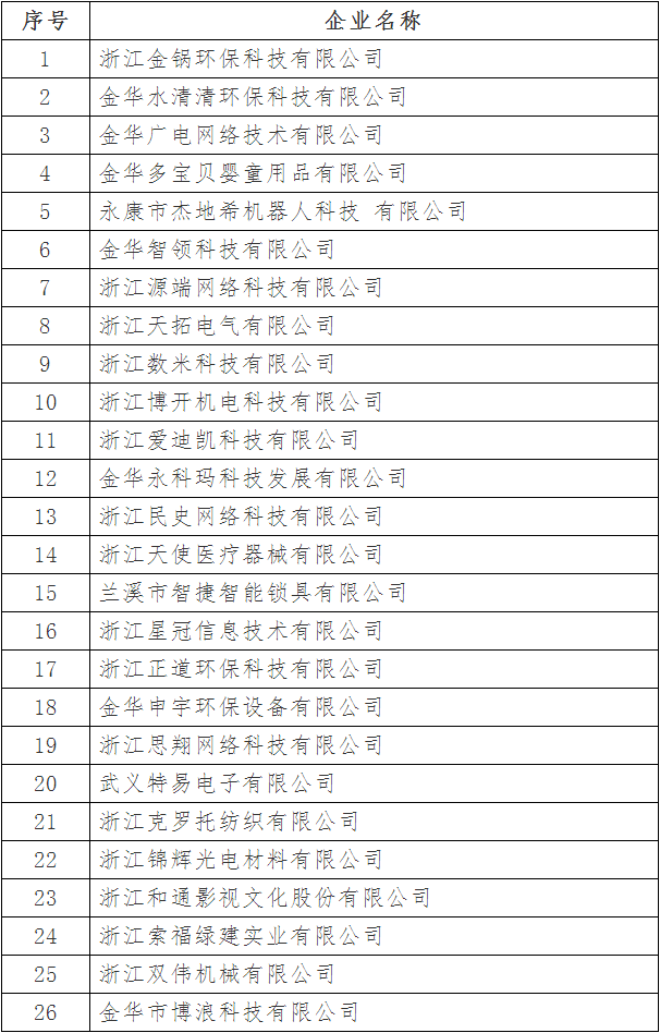 根據(jù)《浙江省人民政府關(guān)于下放部分省級行政審批和管理事項的通知》(浙政發(fā)〔2012〕73號)精神,按照《浙江省科學(xué)技術(shù)廳關(guān)于印發(fā)浙江省科技型中小企業(yè)認定管理辦法的通知》(浙科發(fā)高〔2016〕88號)的有關(guān)文件規(guī)定,在各縣(市、區(qū))科技主管部門審核推薦基礎(chǔ)上,經(jīng)市科技局核對,擬同意認定浙江金鍋環(huán)??萍加邢薰镜?21家企業(yè)為2018年金華市第一批浙江省科技型中小企業(yè),現(xiàn)予以公示,接受社會監(jiān)督。