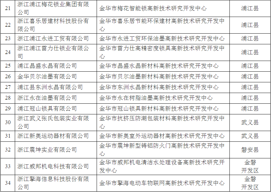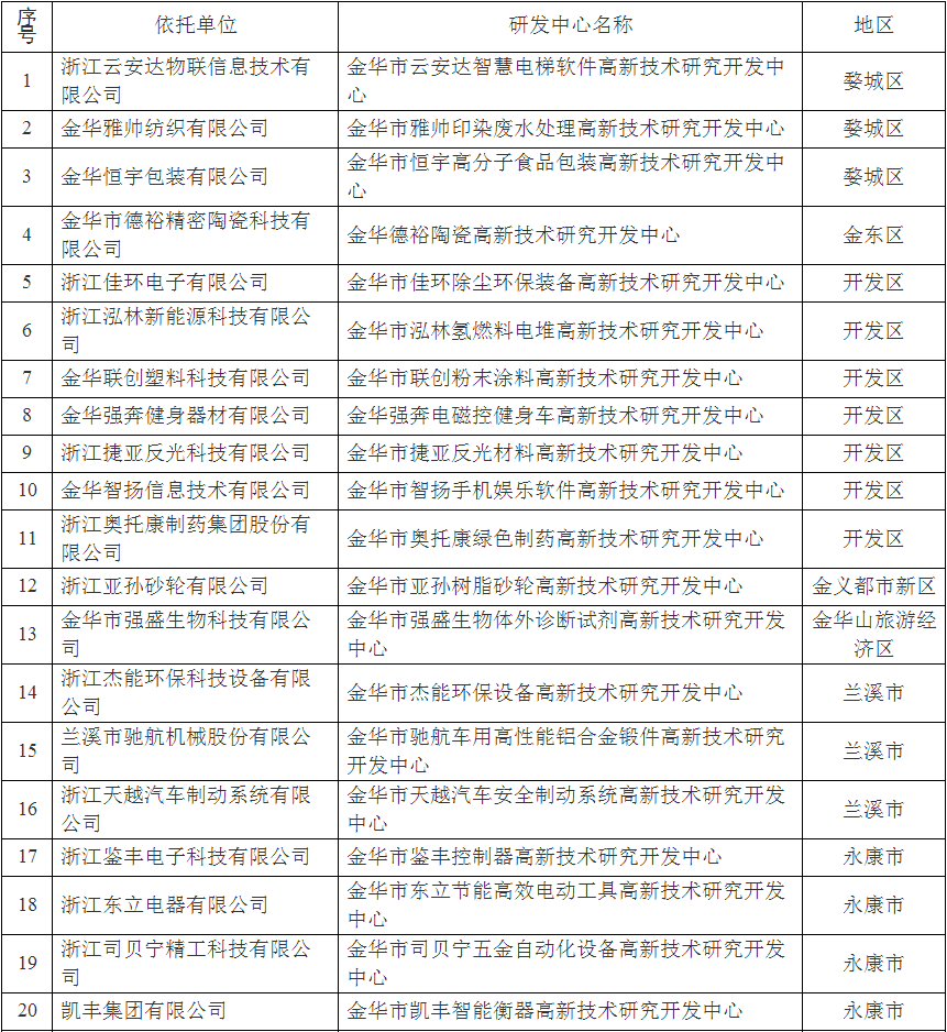 2018年第一批金華市擬認定高新技術(shù)研發(fā)中心名單