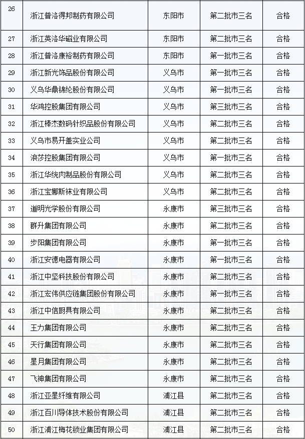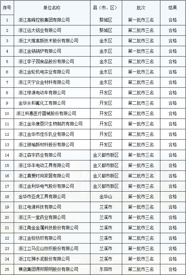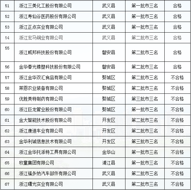 金華市”三名“培育試點企業(yè)復(fù)審結(jié)果