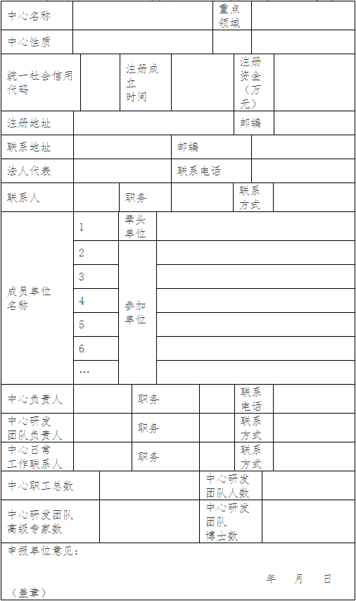 浙江省制造業(yè)創(chuàng)新中心培育創(chuàng)建基本信息表