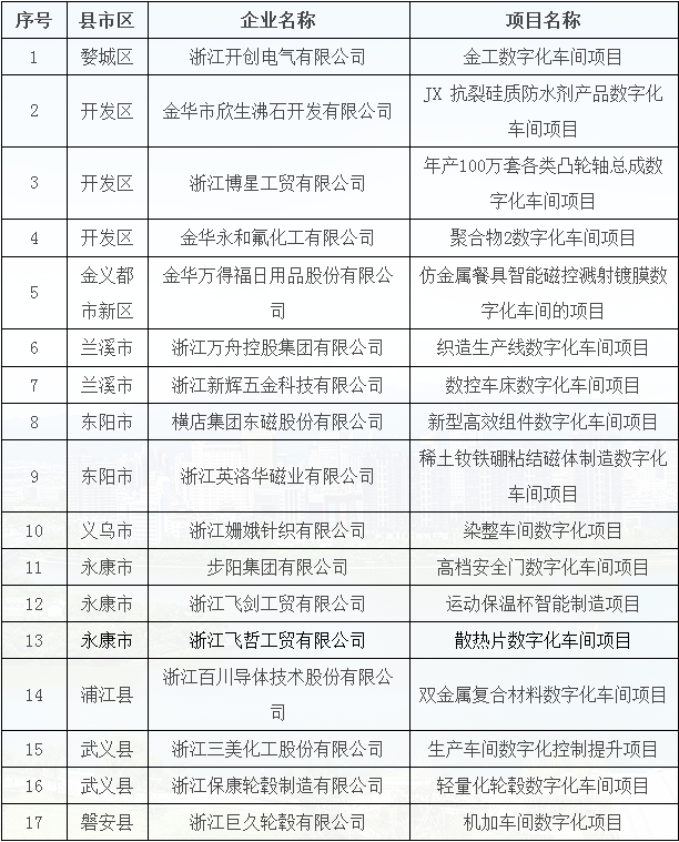 附件:2018年金華市“數(shù)字化車間”和“物聯(lián)網(wǎng)工廠”示范項目名單(20個)