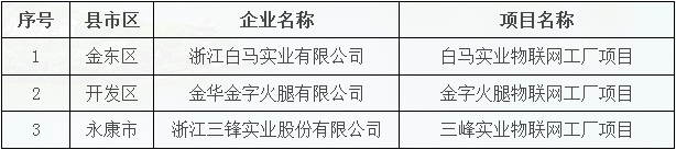 2018年金華市“物聯(lián)網(wǎng)工廠”示范項目名單