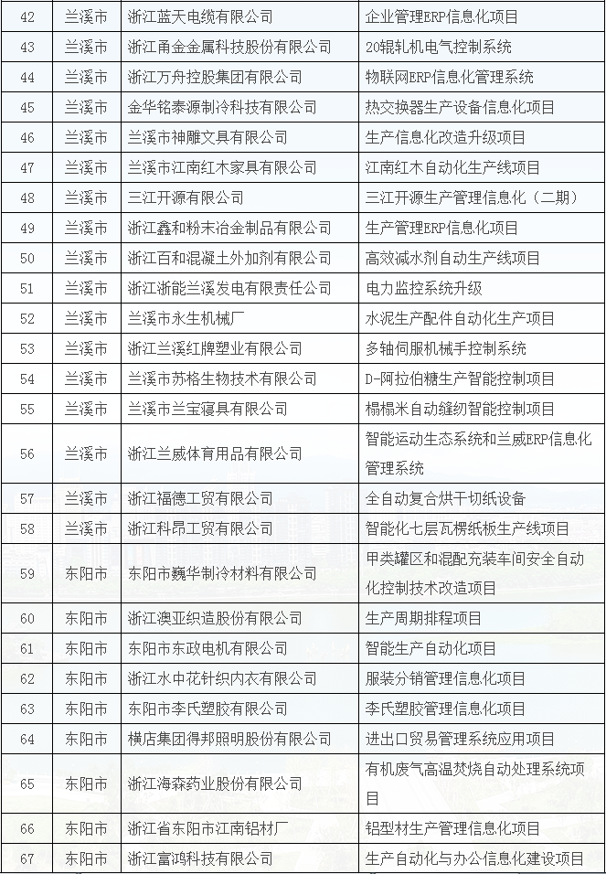 2018年金華市兩化融合重點項目名單