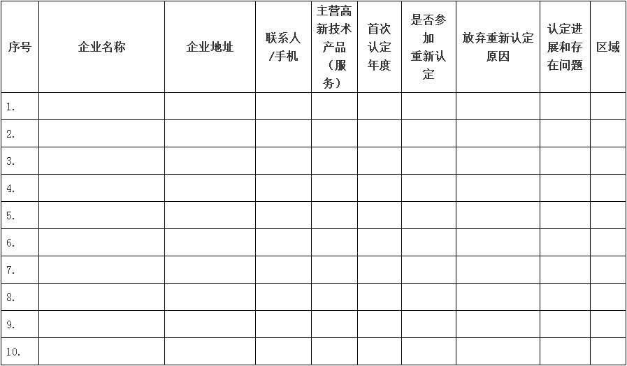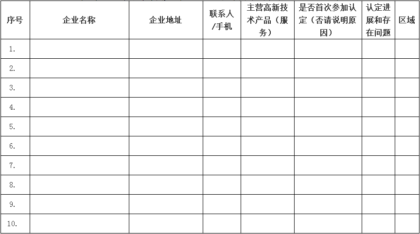 請(qǐng)各縣(市、區(qū))科技局和開發(fā)主體科技主管部門盡早謀劃、精心組織、狠抓落實(shí)、確保實(shí)效,并從1月開始,于每月15日、30日前填報(bào)《金華市新申報(bào)國(guó)家高新技術(shù)企業(yè)清單》(見附件1)報(bào)市科技局工業(yè)與高新技術(shù)處備案。