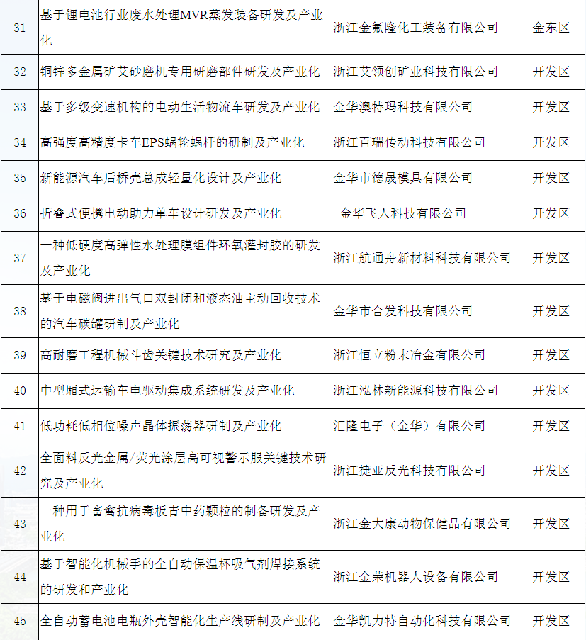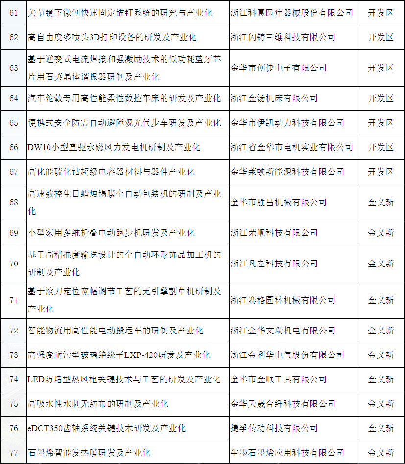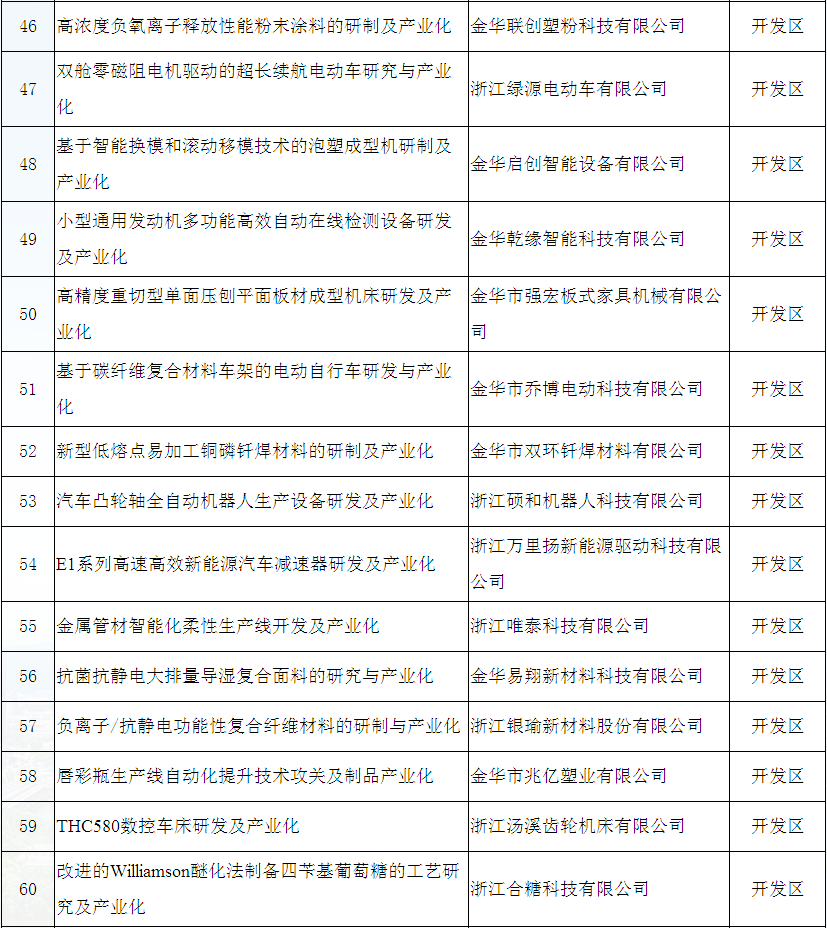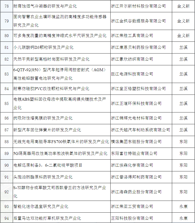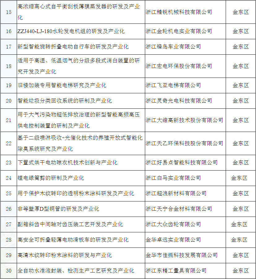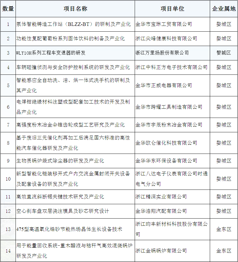 金華市2019年技術(shù)創(chuàng)新項(xiàng)目立項(xiàng)公示名單