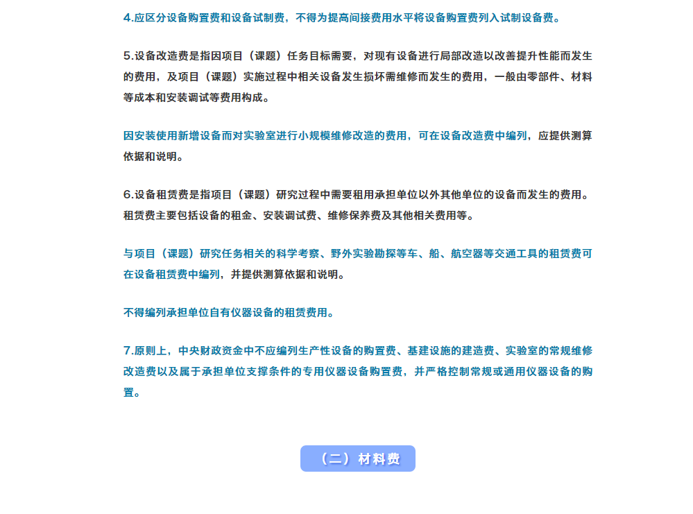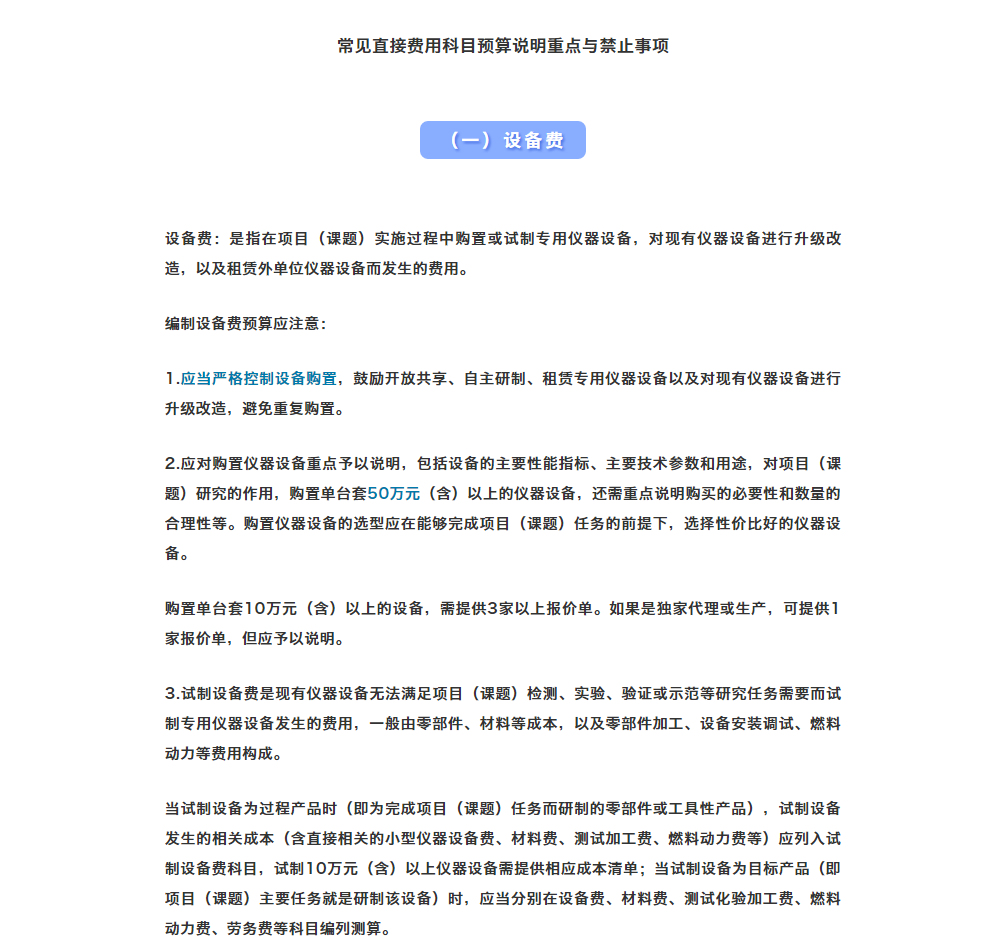 設(shè)備費(fèi):是指在項(xiàng)目(課題)實(shí)施過程中購置或試制專用儀器設(shè)備,對現(xiàn)有儀器設(shè)備進(jìn)行升級改造,以及租賃外單位儀器設(shè)備而發(fā)生的費(fèi)用。