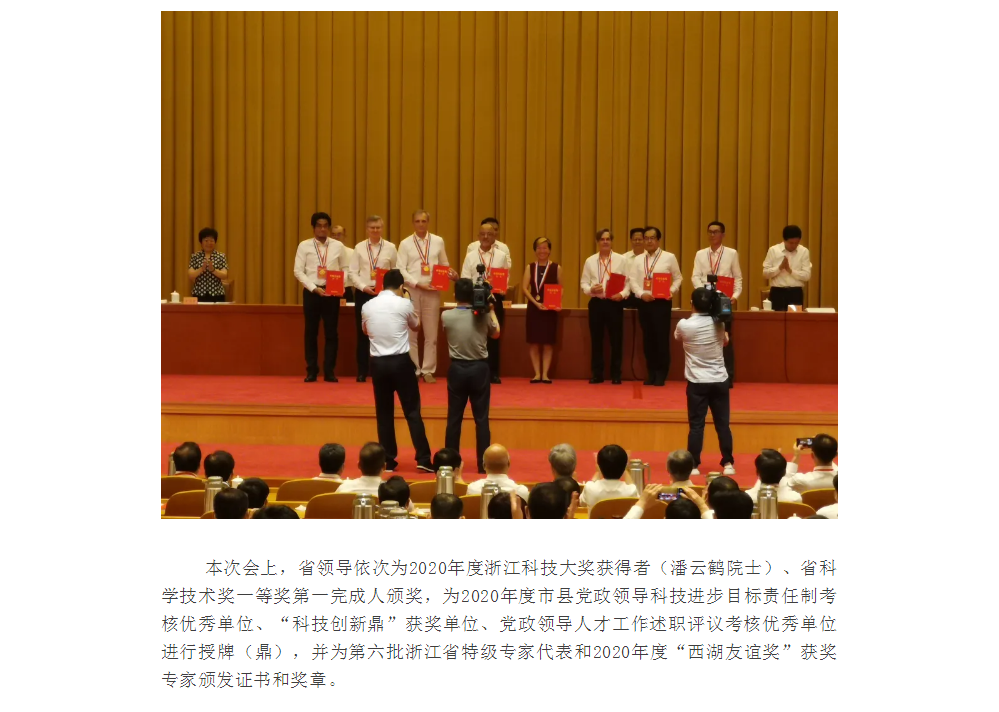 浙江大維高新技術(shù)股份有限公司的約瑟夫·斯發(fā)基斯,浙江師范大學(xué)的莫洽林·葉夫根、雅羅斯拉夫·內(nèi)塞利爾3位外國專家獲得2020年“西湖友誼獎(jiǎng)”。
